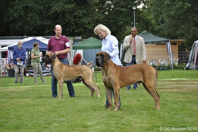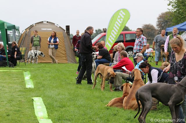 Über 60 Meldungen lagen vor und vier Ortsgruppen der Landesgruppe Westfalen hatten ihre Teilnahme zugesagt. Als dann endlich die ersten Gäste eintrafen verschwand die Aufregung und wir stürzten uns in diesen Tag. Lange haben wir am Essen gefeilt, etwas neues sollte es geben, pulled Pork ist es geworden und scheinbar hat es gemundet. Von der Kuhbar hatten wir einen Eiswagen da, ein paar Stände mit Leckereien für die Hunde und anderen schönen Dingen für unsere Vierbeiner gab es auch. Auch die alkoholfreien Cocktails kamen wohl sehr gut an und sogar ein paar Stücke Kuchen konnten euch den Tag versüßen. Wir hatten so gut wie keine Parkplatzprobleme und es war fast bis zum Schluß trocken. Wir hoffen es hat allen gefallen.Leider konnten auch heute nicht alle mit den Richtersprüchen zufrieden sein, aber auch das gehört zu einer Ausstellung dazu. Daran wie wir alle damit umgehen könnte noch etwas gearbeitet werden, es kann leider nicht jeder gewinnen, und es kann auch nicht jeder Richter die gleiche Sicht auf unsere Lieblinge haben. Und das der eigene Hund sowieso der allerbeste ist seht eh außer Frage. Leider war die OG-Bochum auch heute mit unseren Hunden etwas unterbesetzt am Start aber das hat uns ja noch nie gestört.